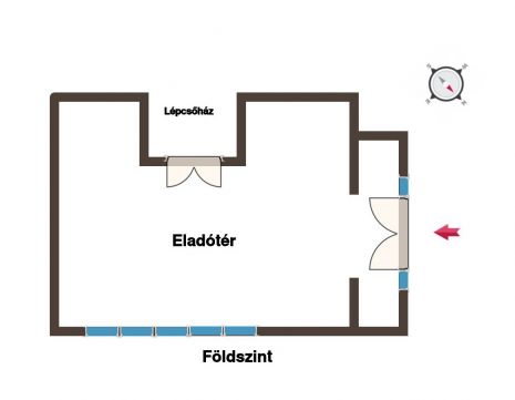 Földszint: 40 m² egy légterű, engedélyezett üzlethelyiség