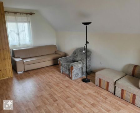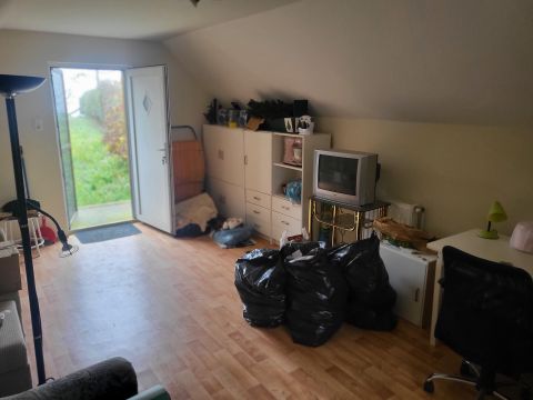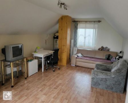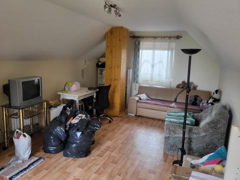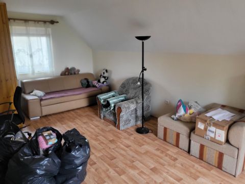 A ház felújításra szorul belülről, földszinten egy nappali, egy szoba, folyosó, fürdőszoba, konyha sarok (nincs kiépítve), külön wc található. Itt található a gépészeti helyiség, amibe a bojler és egy vegyes tüzelésű kazán van. Az emeleten egy tetőtéri szoba van kialakítva, külön bejárattal.