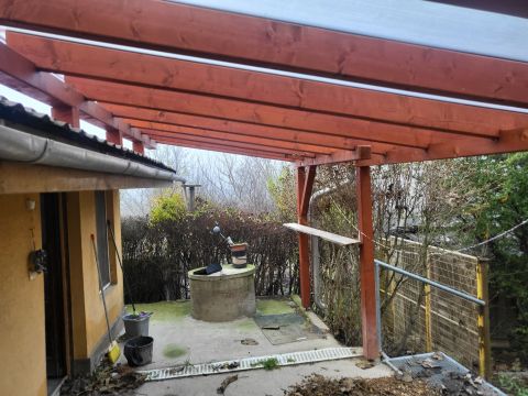A telek 732 m2, két fúrt kúttal, az egyik a ház vízellátását biztosítja. Villany be van vezetve.