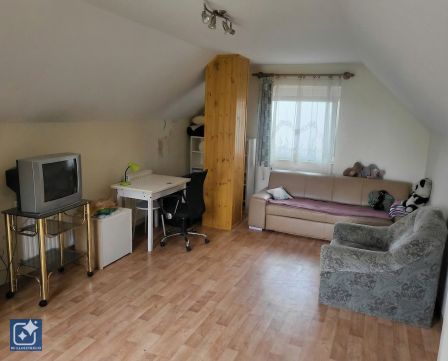 A ház felújításra szorul belülről, földszinten egy nappali, egy szoba, folyosó, fürdőszoba, konyha sarok (nincs kiépítve), külön wc található. Itt található a gépészeti helyiség, amibe a bojler és egy vegyes tüzelésű kazán van. Az emeleten egy tetőtéri szoba van kialakítva, külön bejárattal.
