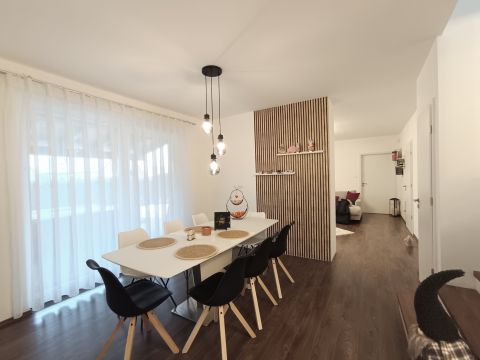 Nagycenken, Soprontól 12 km-re eladó egy igényesen megépített, kétszintes, téglából épült modern ikerház, amely ideális választás családoknak vagy azoknak, akik nyugodt környezetben szeretnének élni, gyors városi és osztrák kapcsolattal.
