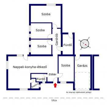 A bejárat közelében találsz egy nagy (13,16 nm)szobát, saját zuhanyzós fürdővel (ide elszállásolhatod a Nagyit, vagy akár ügyfeleket, vendéget fogadhatsz).