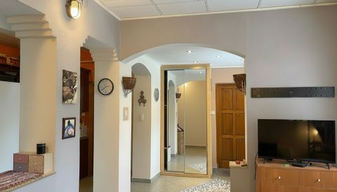 A belső tereket dekoratív, boltíves nyílások tagolják, a padlóburkolat minden helyiségben világos színű kerámialap, a hálórészben laminált padló.