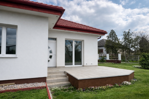 50, illetve 60 cm széles sávalap, 15 cm vastag vasalt aljzat, bitumenes vastaglemezes vízszigetelés, Porotherm 30 N+F falazat, 15 cm külső hőszigetelés. A két lakás közötti elválasztó fal 2 réteg 20 N+F falazóblokkból, valamint hangszigetelő rétegből készült. A tető sátortetős kialakítású, 30%-os dőlésszöggel, vörös színű betoncserép fedéssel. A nyílászárók fehér műanyag kivitelűek, 3 rétegű hangszigetelt üvegezéssel. A belső ajtók dekorfóliás kivitelezésűek.
