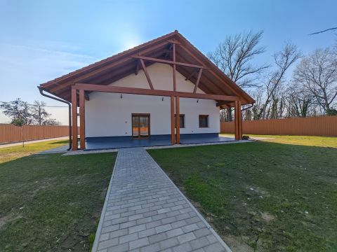 Az egész házban minőségi kőburkolat találhatóak. Hőszigetelt, redőnnyel ellátott műanyag külső nyílászárók kerültek beszerelésre, a belső nyílászárók, falburkolatok fából készültek.
