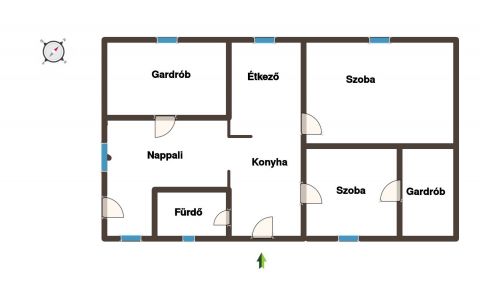 A lakótér konyhából, étkezőből, nappaliból, előtérből, két hálószobából és gardróbból áll, amely igény szerint külön szobává alakítható.