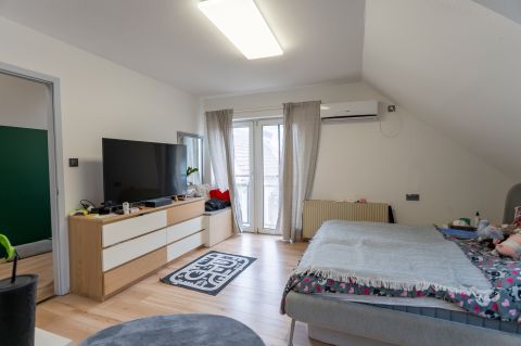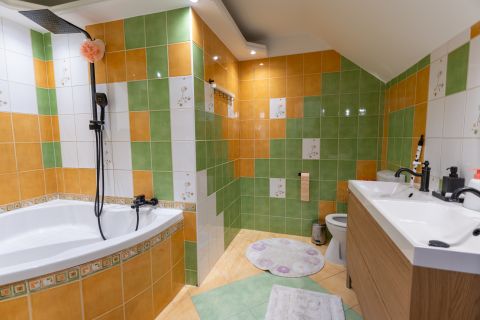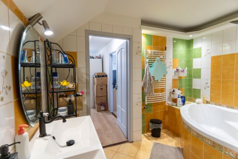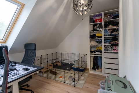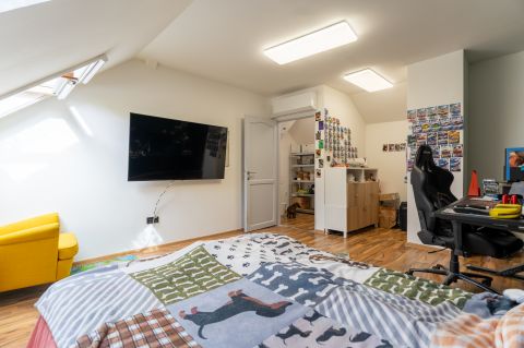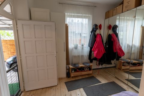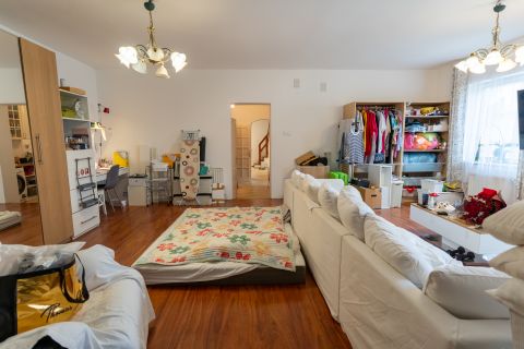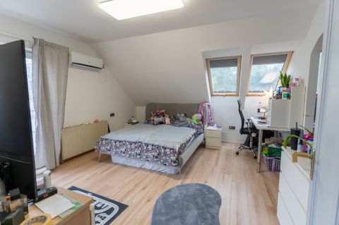 A tágas, világos helyiségek ideális életteret biztosítanak akár nagyobb család számára is. A ház elrendezése lehetővé teszi, hogy két generáció kényelmesen, mégis külön életteret kialakítva éljen.