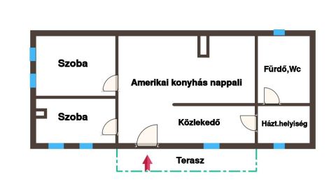 - amerikai konyhás nappali + 2 szoba + fürdőszoba + háztartási helyiség