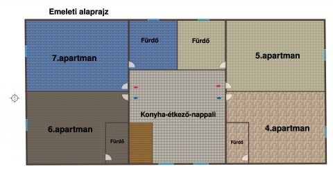 Eladó egy jelenleg vendégházként üzemelő, 7 különálló apartmannal rendelkező ingatlan.