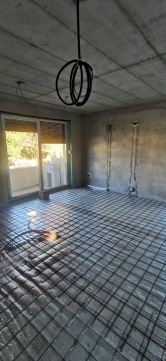 Központi levegővíz hőszivattyú, padlófűtés minden helyiségben, fan-coil hűtés/fűtés a nappaliban és az emeleti szobákban