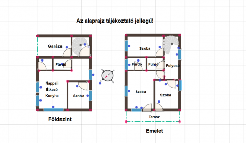 Földszint: garázs közvetlen lakótéri kapcsolattal, előtér, fürdőszoba WC-vel, nappali-étkező, valamint igény szerint alakítható egy szoba