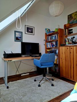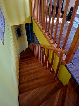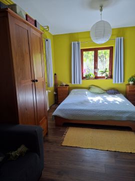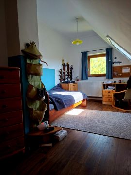 *az emeleten 2 kisebb (akár összenyitható) és 2 kényelmes méretű szoba kilátással a dimbes-dombos vidékre, fürdőszoba és gardrób került kialakításra.