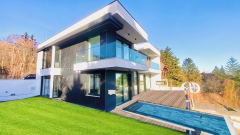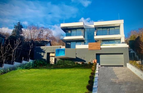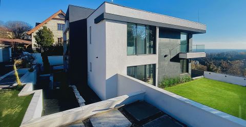 Budapest XII. kerületének déli lejtőjén található ez az újépítésű, minimalista stílusú, panorámás luxus családi ház.