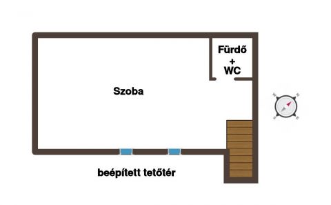 csak egy rendelkezik közvetlen kertre néző ablakkal. A beépített tetőtér további 30