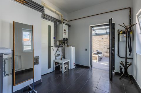 A ház műszaki tartalma kimagasló színvonalú: A belső terek prémium burkolatokkal, bútorokkal és háztartási gépekkel lettek kialakítva. Az ingatlan belső tereit gondosan tervezték meg, hogy maximalizálják a kényelmet és a funkcionalitást. Az otthon melegét gáz kazánnal, míg a nyári hónapok kellemes hőmérsékletét klímaberendezéssel biztosíthatja a jövőbeli tulajdonos. A helyiségek praktikus elrendezésűek, stílusukat belsőépítész tervei alapján alkotta meg a tulajdonos.