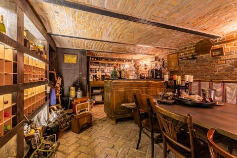 Az épület egy kb. 330 m2 alapterületű, tégla építésű luxus ház. 2012-ben épült. Két lakószinttel + egy hatalmas borospincével rendelkezik. Az elrendezése: hatalmas amerikai konyha+nappali, 4 szoba, 3 fürdőszoba, 3 gardrób( melyek szobává alakíthatók), téli kert, ahol a jacuzzi található és a borospince.