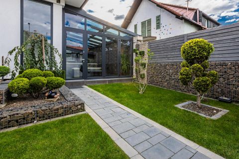 A telek 736 m2 területű. A házból nyíló udvari nézet nyugalommal tölti meg a lakóteret, Ez a sajátos elhelyezkedés teszi lehetővé, hogy élvezze a városi élet minden előnyét. A terület rendelkezik egy kb. 55 m2-es igényesen kivitelezett duplagarázzsal is.