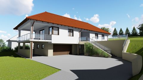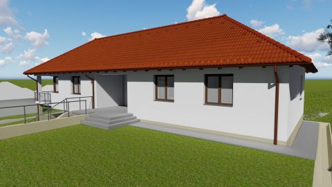 Ebben a kis faluban van egy 1324 nm-es építési telek, amelyre tervezőnk megálmodta ezt a minden igényt kielégítő, téglából készülő családi házat.