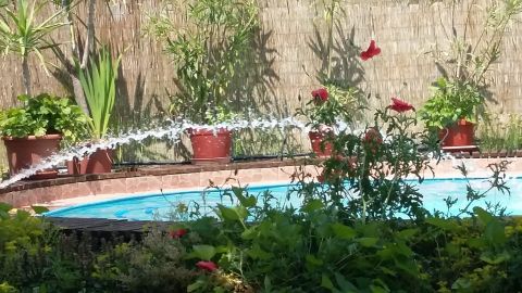 Hátsó kertben gyümölcsfák (Mandula, Datolyaszilva, Alma, Körte, Gránátalma, Őszibarack, Szilva, Szeder, Málna, Szőlő, Birsalma, Cseresznye).