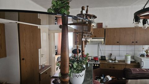 Az elosztása rendkívül praktikus. A fűtése egyelőre kályha, de van kiépített központi fűtés vegyestüzelésű kazánnal,