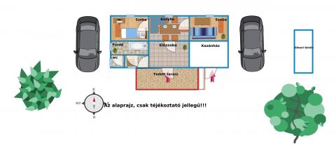 Az udvaron található kerti tároló(vagy garázs),fúrt kút, gyönyörű növények.