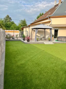 Nagyon hangulatos a kert, tiszta és rendezett.