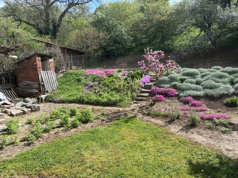 Ez az otthon egy csendes utcában található, ahol a forgalom zajától távol élhet. A gyümölcsfákkal teli kert ideális hely a természet szerelmeseinek, emellett egy praktikus tároló is része az ingatlannak, ahol kényelmesen tarthatja kerti eszközeit.