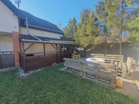 A fürdőszobában kialakított szauna a mindennapokban is különleges kényelmet nyújt, míg a fedett terasz és az erkély ideális helyszínt biztosít a pihenéshez. Az udvar hátsó részén egy hangulatos sütögetőhely található, amely kiváló lehet családi vagy baráti összejövetelekhez.
