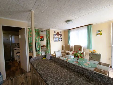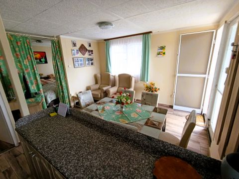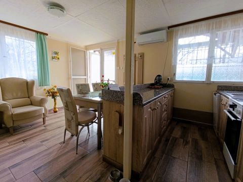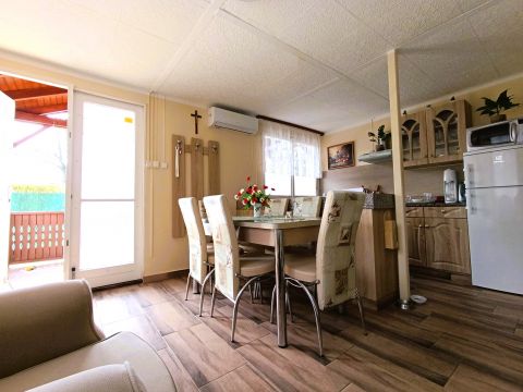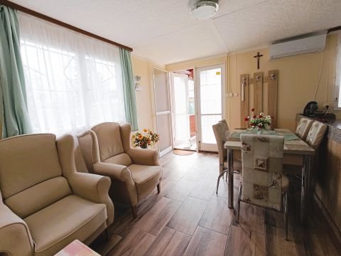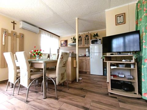 A praktikusan kialakított 30 m2-es házban, minden megvan ami kell akár az állandó lakhatásra is.