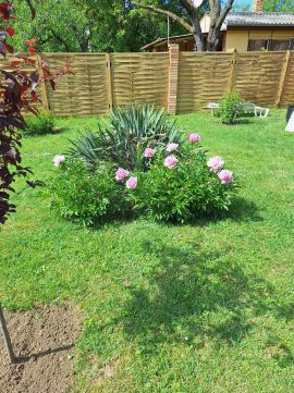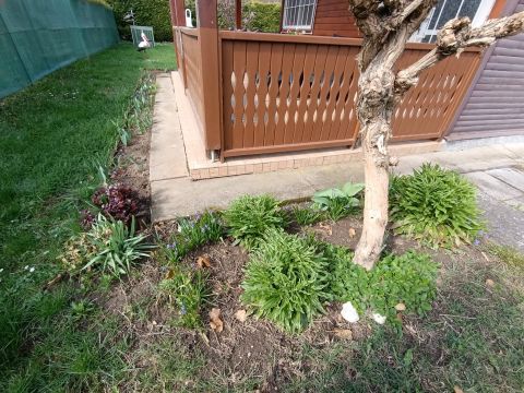 -A telek körbe van kerítve , sövény is védi 2 oldalról.