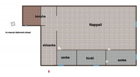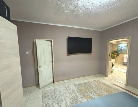 A ház elrendezése rendkívül praktikus: egy nagy, napfényes nappali biztosít kényelmes életteret, emellett két külön nyíló szoba áll rendelkezésre. A helyiségek jól kihasználhatók, barátságos hangulatot árasztanak.