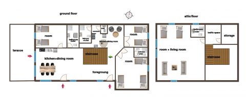 - The building is 2-storey, brick-walled, insulated. Equipped with plastic shutters.