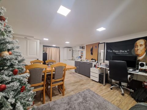 A szuterén szinten egy önálló szobakonyhás lakrész került kialakításra saját fürdőszobával, amely ideális vendéglakásnak, otthoni irodának vagy akár külön élő családtagnak, innen nyílik a garázs is, ezért teljesen zavartalanul lehet használni a lenti részt.