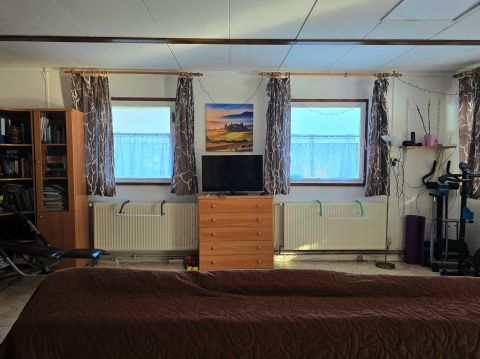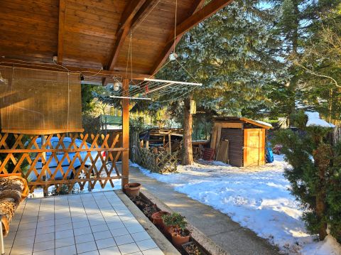 A ház maga könnyűszerkezetes, a jól megbízható Betonyp lapokból épült, (+8cm hungarocell oldalszigetelés az oldalfalakon, a födémen pedig 10 cm kőzetgyapot) beton alapra, mely alatt egy 33 négyzetméteres teljesen százar, jól kihasználható pince is található, melybe a nappaliból tudunk lemenni. Mindez egy 668 négyzetméteres telken helyezkedik el, mely minden oldalról be van kerítve, az egyik oldalon, külön kis kapu is nyílik a telek mellett található kis patakhoz.