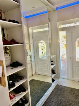 A nettó 137 nm-es ház rendkívül jó beosztású,  egy hatalmas nappali szobából, tágas étkezős konyhából, három hálószobából, két fürdő /Wc helyiségből, egy háztartási helyiségből, valamint egy gardrób szekrénnyel ellátott előszobából áll. A közelmúltban a ház kívül-belül megújult, szigetelést kapott és kívül-belül új színezést.