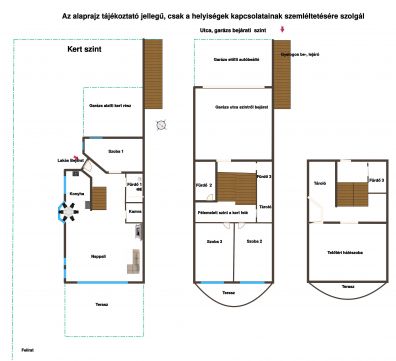 - A nappalival egy légtérben, de két lépcsőfokkal magasabban helyezkedik el a jól használható méretű étkezős konyha, amely még tágasabb térérzetet biztosít