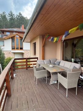 Ház: 148 nm belső két szinten, 15nm-es panorámás fedett terasz, nappali + 5 szoba, 2017-es építés.
