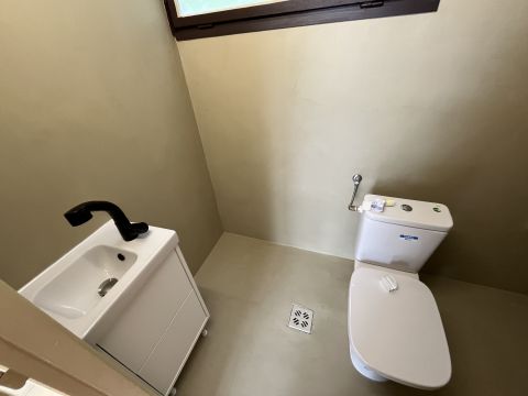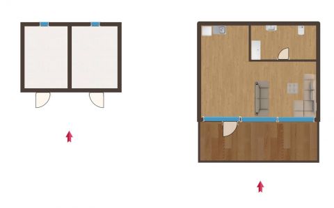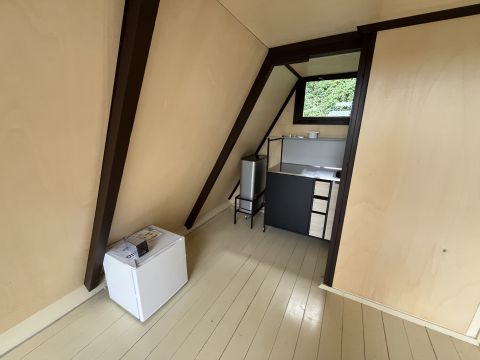 A kisebb, egyszintes házban galériás háló került kialakításra, emellett egy konyha, egy apró nappali és egy kis mosdó is helyet kapott, minden adott egy kellemes hétvégi pihenéshez.