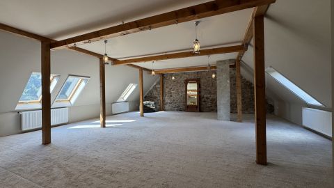 A felső szinten jelenleg egy majd bruttó 80-nm-es stúdió van kialakítva ,ami több helyiség lehetőségét rejti magában. A felső szinten még megtalálható egy úgyszintén nem szokványos bruttó 38nm-es hálószoba és mosdó.