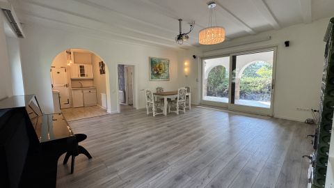 Az ingatlan alsó szintjén nappali, konyha ,két hálószoba, fürdőkádas fürdőszoba és a nappaliból egy hatalmas fedett majd 40nm-es fedett ,gyönyörű marokkói burkolatú ,különös atmoszférájú terasz helyezkedik el.