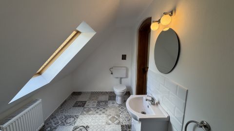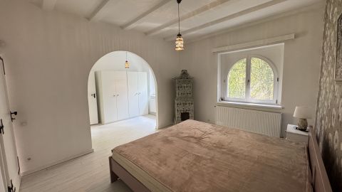 Az alsó szinten a nappaliban és a fürdőszobás hálószobában található két csodálatos századvégi cserépkályha tökéletes megoldást nyújt a gázcirkó ,(mely az ingatlan fűtését biztosítja)kiváltására.
