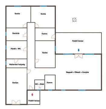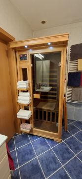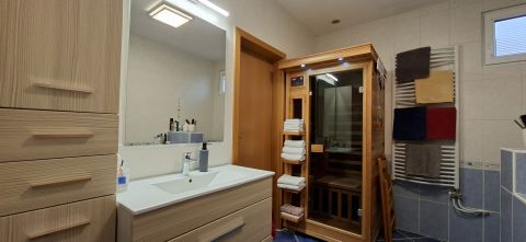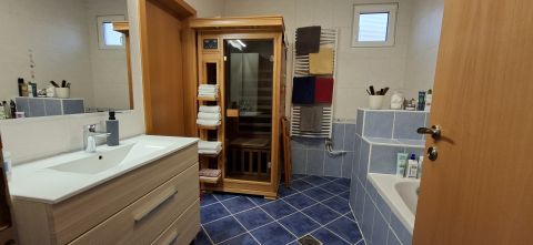 A ház kényelmét és modern felszereltségét tovább növeli a dupla WC, az infraszauna, valamint a 3 db klímaberendezés. Az energiatakarékos működésről 5 kWh teljesítményű napelemes rendszer és központi vízlágyító gondoskodik.