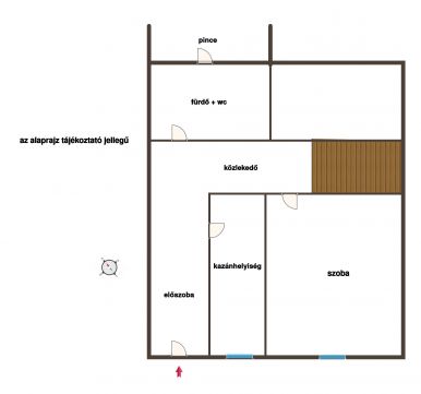 - előszoba, közlekedő, fürdőszoba wc-vel, kazánhelyiség, 1 szoba és egy borospince található. Garázs külön az utcafront felől közelíthető meg.
