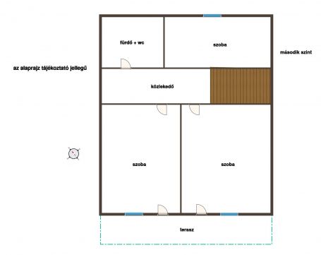- közlekedő, 3 db fél szoba, zuhanyzó wc-vel és terasz, padlásfeljáró.