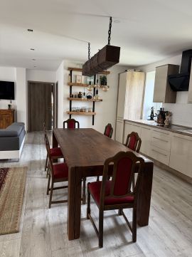 -       Négy szoba + gépiesített amerikai konyha egy légtérben az étkezővel és nappalival