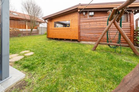 A telken különálló, 14 m²-es épület is található, amely jelenleg gyerekszobaként szolgál, de vendégszobának vagy elkülönített pihenőtérnek is kiválóan alkalmas. Emellett egy különálló tároló és WC is rendelkezésre áll, amely a mindennapi használatot és a kerti tartózkodást teszi kényelmesebbé.