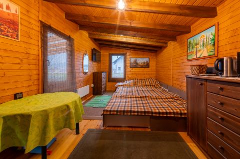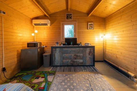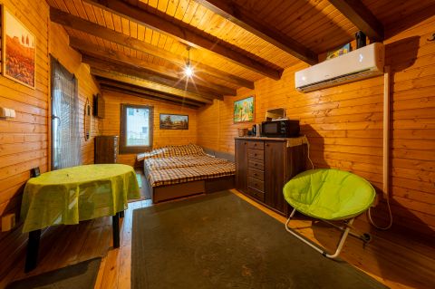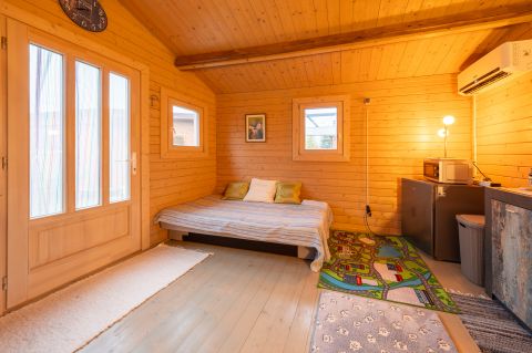 Szigetelt faház, többféle fűtési megoldással (hűtő-fűtő klíma, elektromos fűtőpanel)