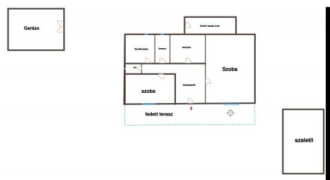 Található még a telken belül egy garázs egy külső kazánház és egy szaletli is.