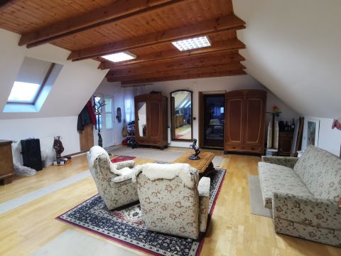 A felső szint nagyon egyedi tervezésű, nagy tágas terek vannak, átalakítási lehetőség van benne.