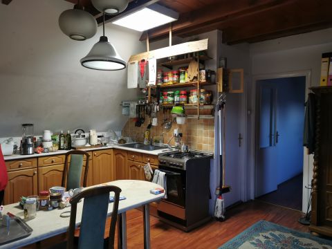 Az alsó szint teljes egészben tároló van használva meg garázsként funkcionál.